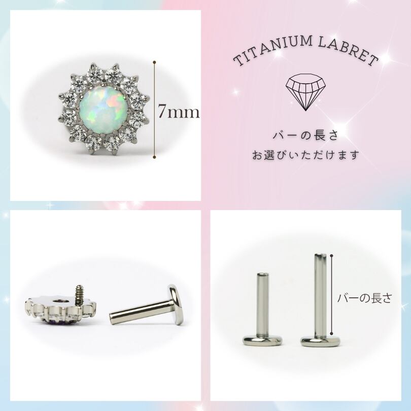 高品質 高級 チタン ホワイトオパール×CZ フラワーラブレット 軟骨ピアス ボディピアス ヘリックス イヤーロブ トラガス コンク 16G/ LAB133