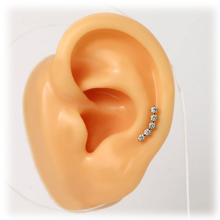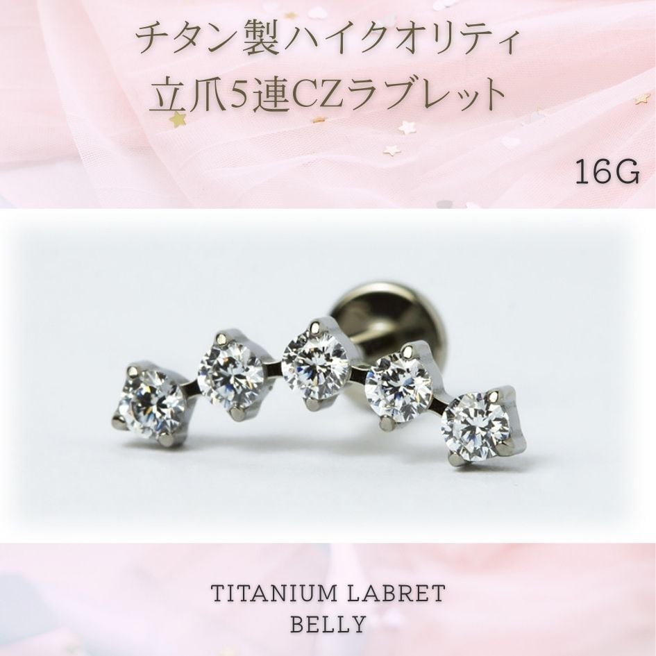 【金属アレルギー対応】5連立爪CZ チタン ラブレットスタッド 高品質ボディピアス 痛くならない裏側フラット 16G 軟骨ピアス トラガス コンク ヘリックス イヤーロブ LAB136