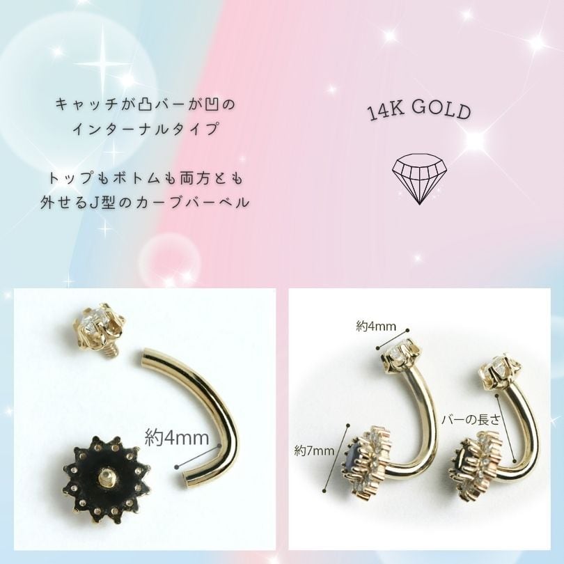 ◆バーの太さ: 14ゲージ(一般的なへそピアスの太さ)