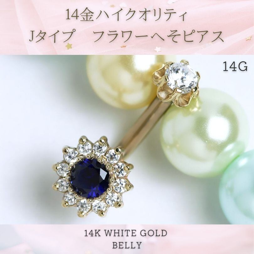 【14金】本物 K14ホワイトゴールド×ジルコニア へそピアス ゴージャスなダブルジュエル フラワーデザイン ボディピア