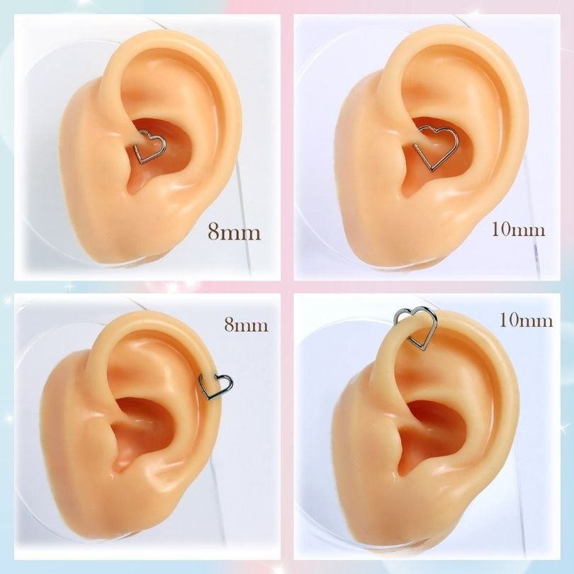 ハート型のデザインがさりげなく個性を引き立て、普段使いからデート、特別な日にもぴったり。耳たぶや軟骨(ヘリックス・フォワードヘリックスやアンテナヘリックス)など、お好きな部位に使えます。