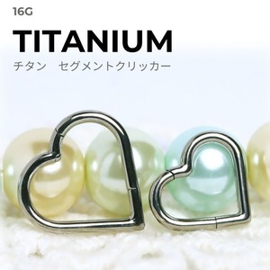 高品質 医療用チタン CBR055 16G ハート型 ワンタッチセグメント クリッカー ボディピアス 軟骨ピアス ヘリックス フォワードヘリックス ダイス アンテナ