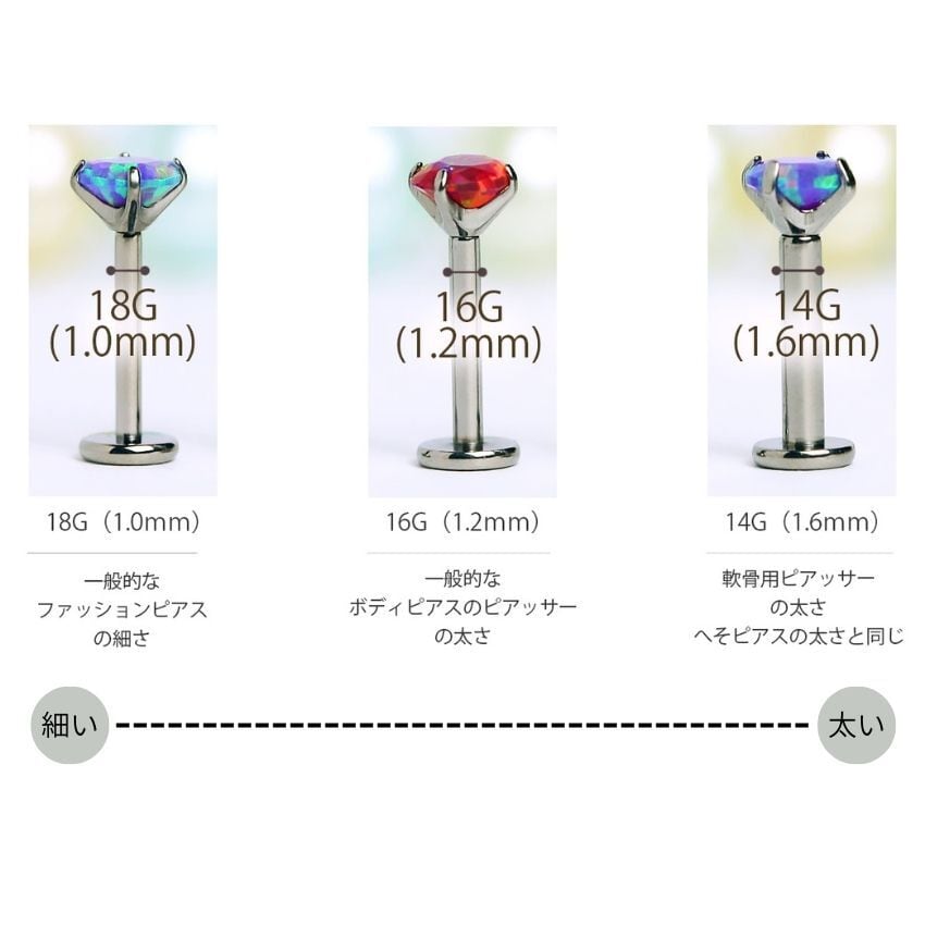 ・16ゲージ(太さ1.2mm)軟骨ピアスとしてやや細め