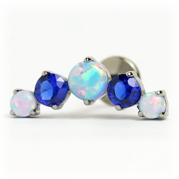 チタン製 軟骨ピアス 16G 18G 【オパール×ブルージルコニア 5連】 ラブレットスタッド ボディピアス 金属アレルギー対応 裏側フラットつけっ放しOK素材【LAB146】
