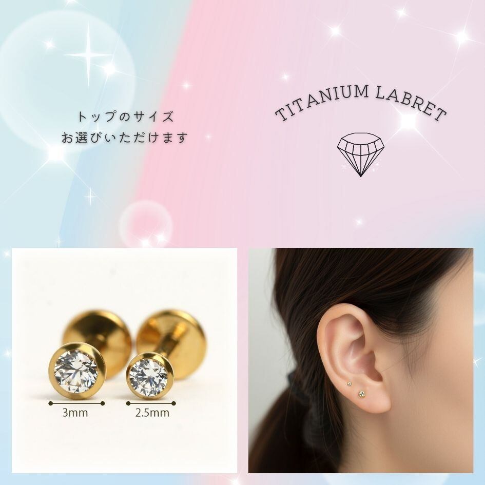 インプラントグレードチタン製 PVDイエローゴールド ベゼルジルコニア ラブレット 高品質 ボディピアス 軟骨用 金属アレルギー対応 裏側フラット トラガス ヘリックス 16G【LAB145GP】