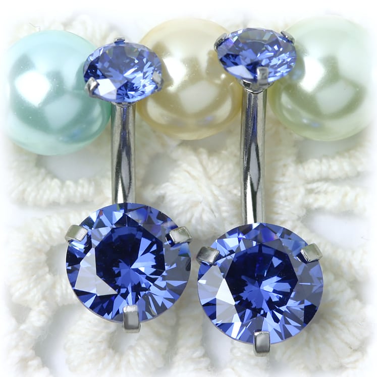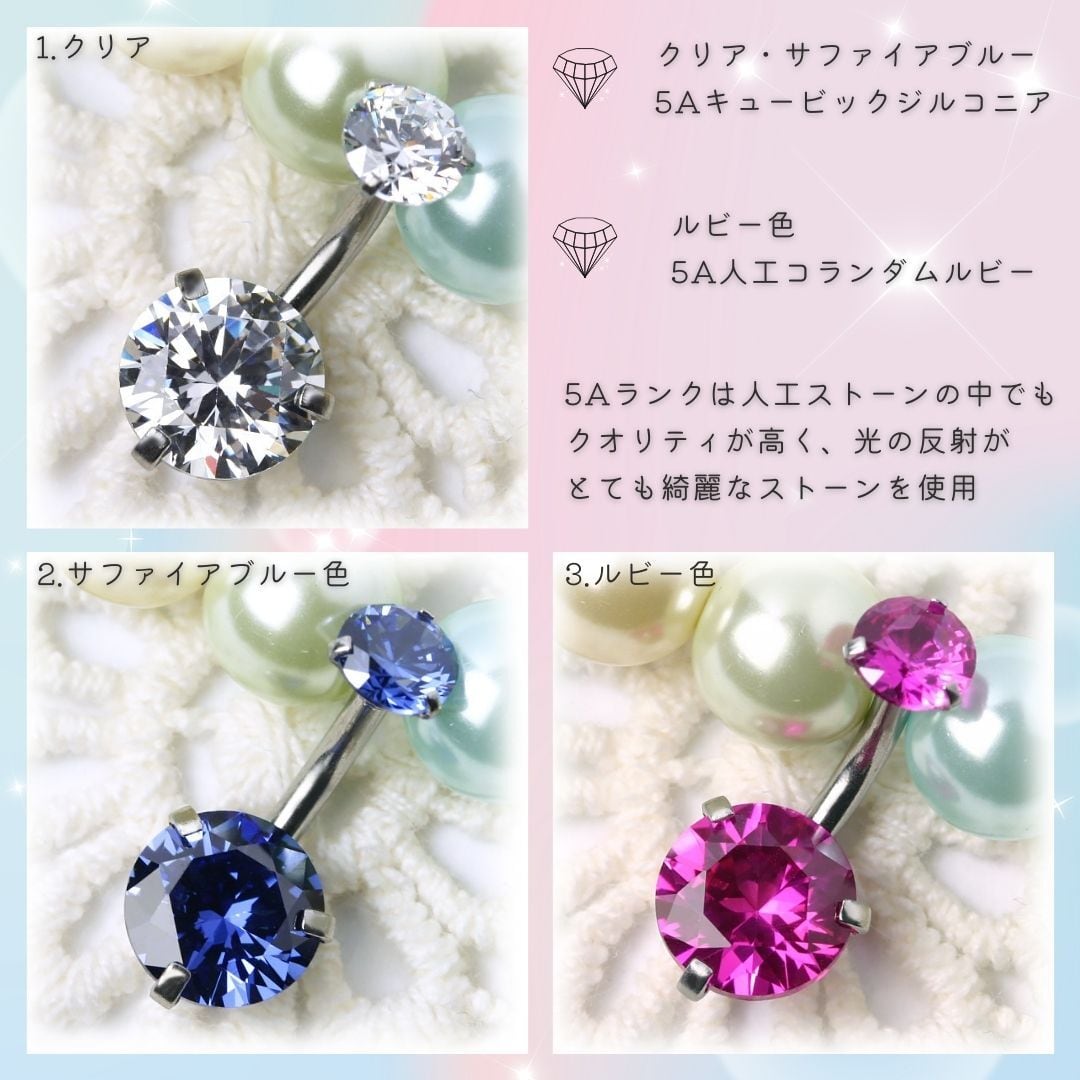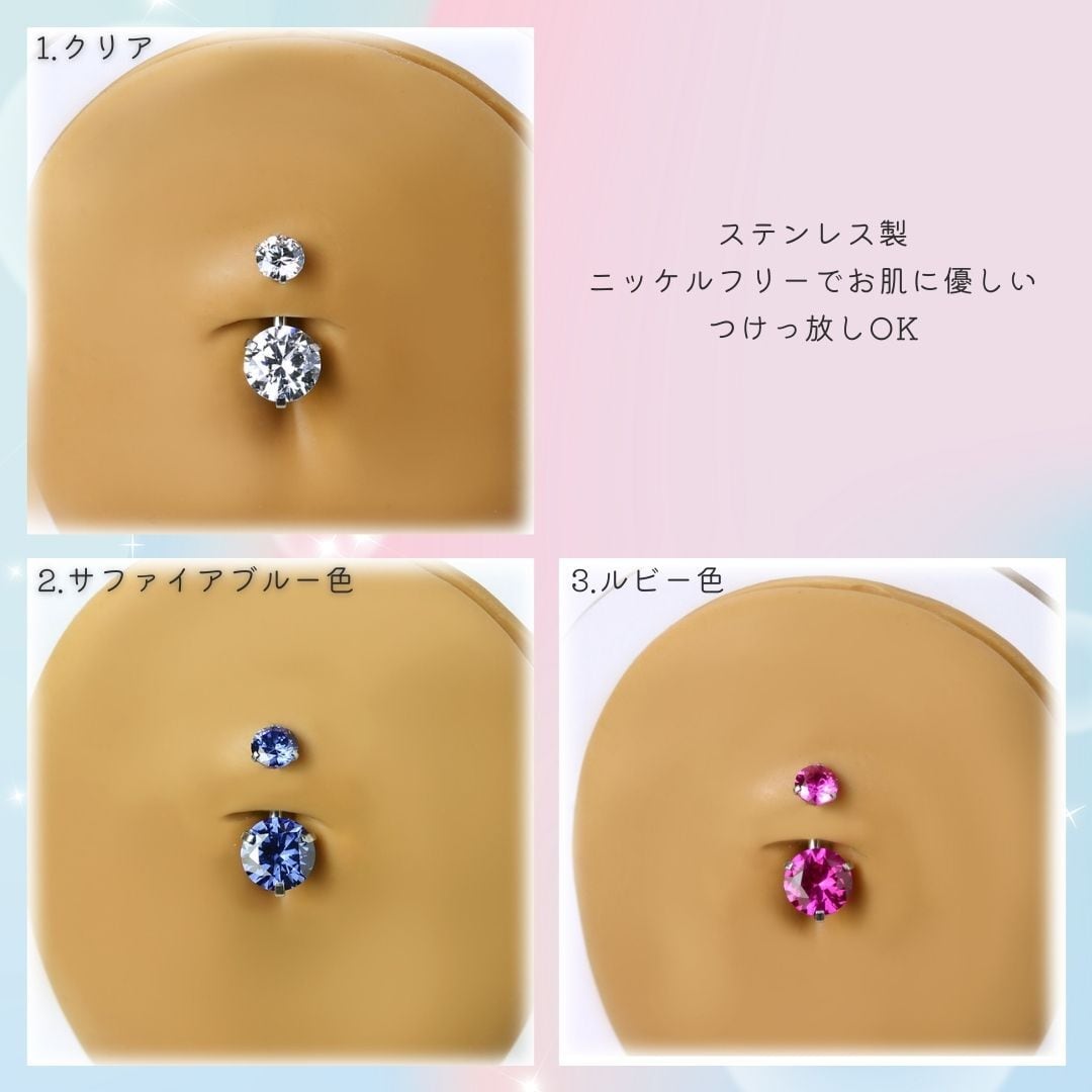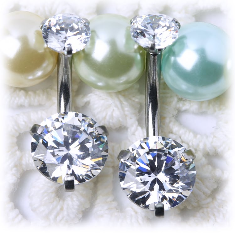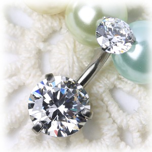 BN188 ダブル立爪CZストーン へそピアス ボディピアス オールステンレス ※バー短いタイプあり クリア レッド ブルー