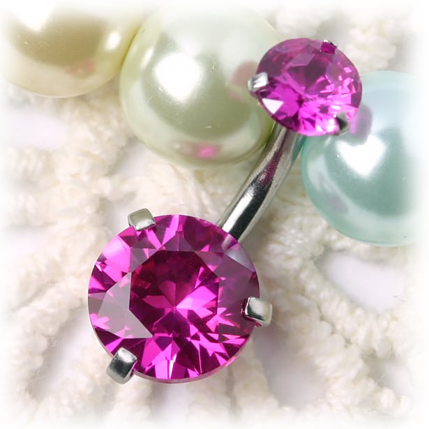 ストーンは輝きの強い5Aランクのキュービックジルコニアと、深みのある人工ルビー。まるで本物のジュエリーのような輝きでお腹を華やかに飾ってくれます。