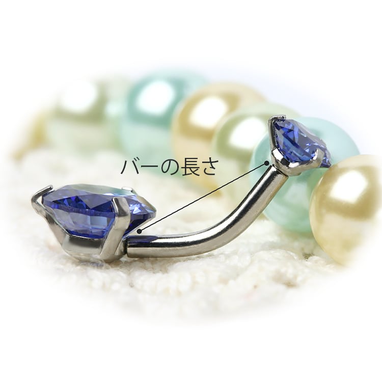 ※注) こちらの商品はストーンの中央部の留め金具からのバーの長さとなりますので、バーベルとストーンの重なっている部分も含みます。